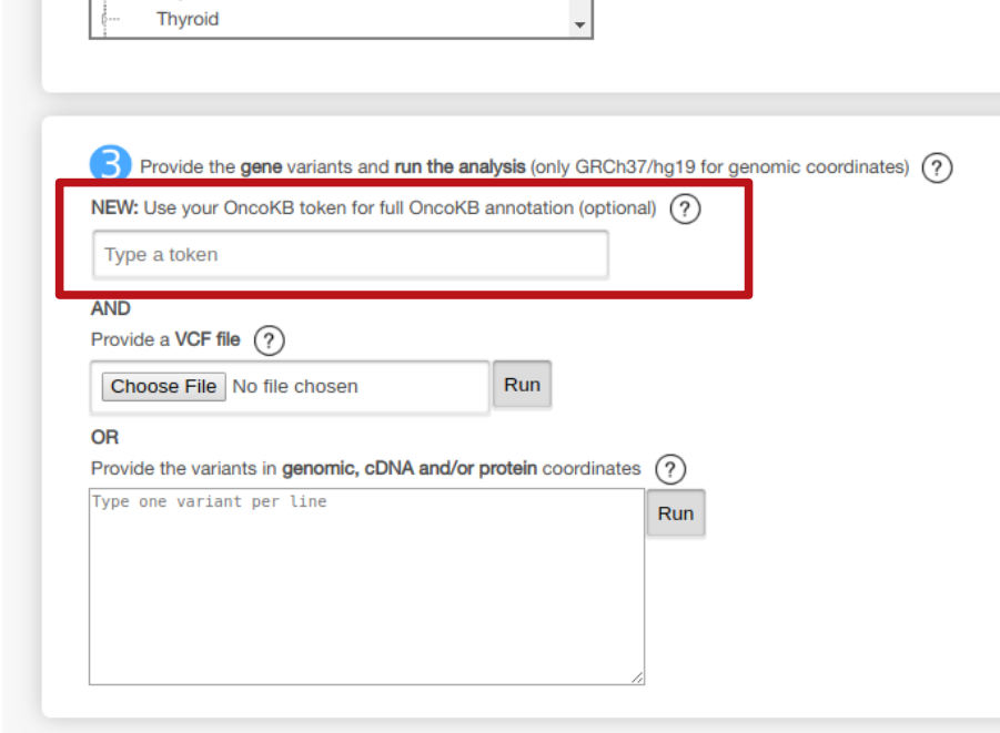 We encourage the users of the public MTBP to follow this process. However, OncoKB developers have kindly facilitated that in case that the token is not introduced, the public MTBP website will still show the OncoKB variant annotation with slightly less detailed content. We thank the OncoKB team for this effort.