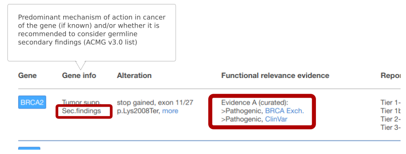 the interpretation of analyzed variants. On one hand, general insights into the role of each affected gene in cancer are available